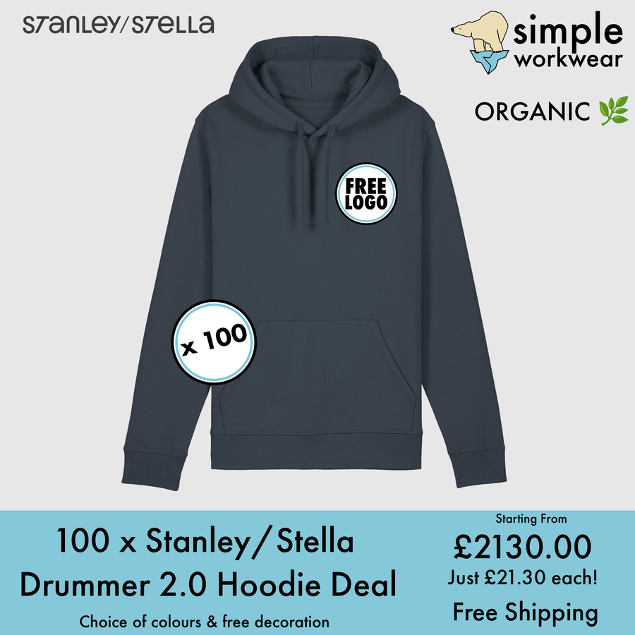 BUNDLE X 100 Stanley/Stella Drummer 2.0 Hoodie With Free Print/Embroidery Logo
