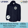 BUNDLE X 50 Uneek Classic Full Zip Fleece Jacket With Free Embroidered Logo